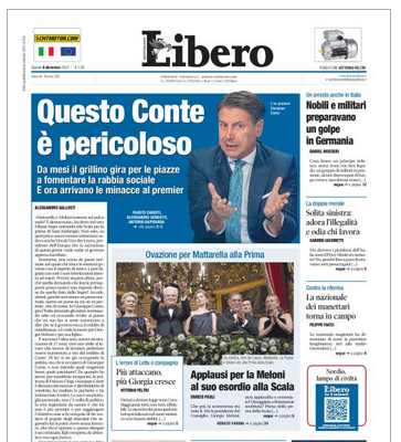Che un 27enne disoccupato minacci Giorgia Meloni di ucciderla insieme alla figlia se dovesse abolire il reddito di cittadinanza, è una cosa che purtroppo va messa in conto, considerando l’alto numero di scocomerati deambulanti. Ma che una testata giornalistica, con tanto di direttore responsabile, metta in relazione Giuseppe Conte con l’iniziativa di quello scocomerato, non è soltanto uno squallido esempio di giornalismo, ma è anche un reato. …