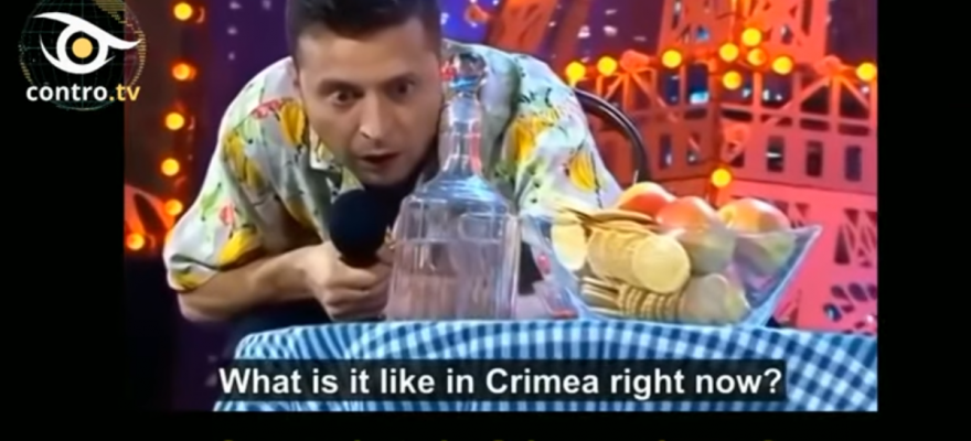 Correva l’anno 2014 quando il comico Volodymyr Zelensky venne ospitato in un programma ucraino di intrattenimento. Impersonava un abitante della Crimea in visita di piacere a Kiev, che alla vista di una bottiglia d’acqua non riuscì a contenersi, bevendola fin quasi a strozzarsi e versandosela sul capo gridando: «oh quant’è bello vivere in Crimea!». …